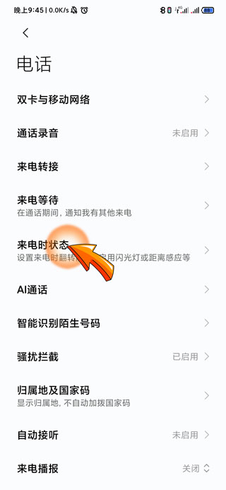 微信的距离感应器是跟随手机系统功能,关闭手机距离感应器需要打开桌面上的“电话”图标,然后点击页面右上角的“齿轮”图标,再点击电话页面中的“来电时状态”选项,最后将“启动距离感应器”右侧的开关关闭即可。