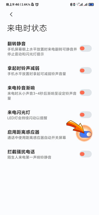4、最后点击关闭“启动距离感应器”右侧的开关按钮即可。