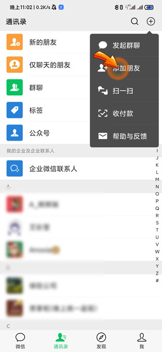 1、微信添加好友首先需要打开微信APP,点击首页右上角的“加号”图标。