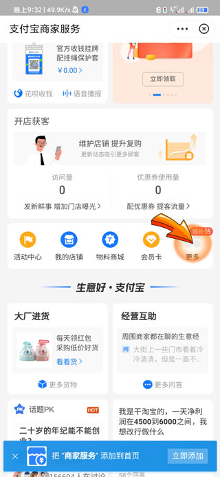 3、进入商家服务页面后,找到并点击“更多”图标。