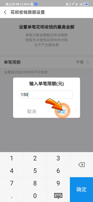 7、最后将单笔限额设置为150,点击右下方的“确认”选项即可。