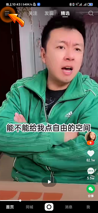 1、快手设置不让某人看首先需要打开快手APP,点击页面左上角的“三横”符号。