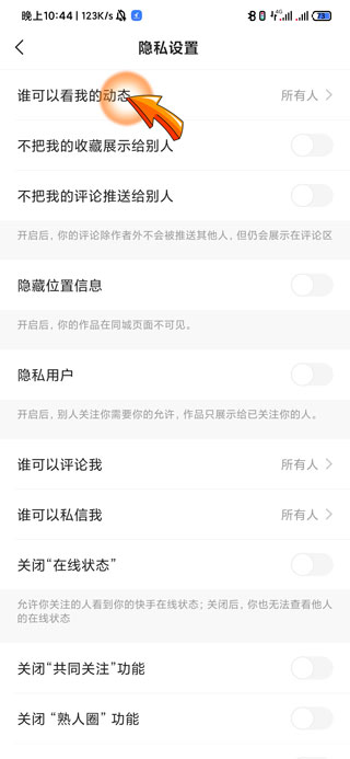 4、再点击页面顶部的“谁可以看我的动态”选项。