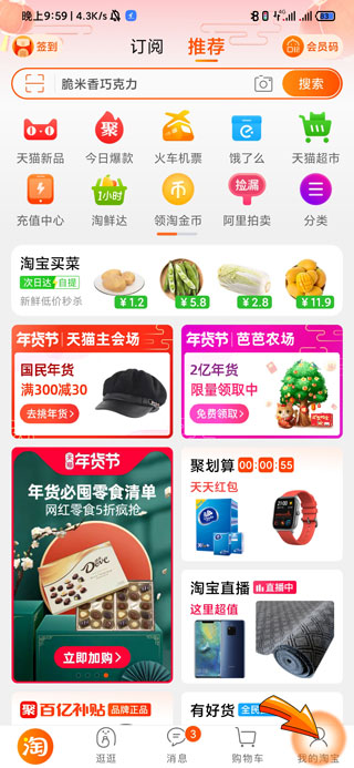 1、淘宝取消关注的店铺首先需要打开淘宝APP,点击页面右下角的“我的淘宝”图标。