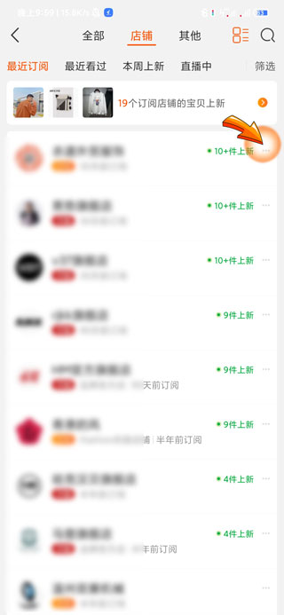 3、然后点击需要取消关注店铺右侧的“三点”符号。