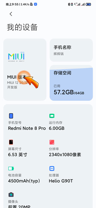 3、然后在我的设备中点击“miui版本”图标。