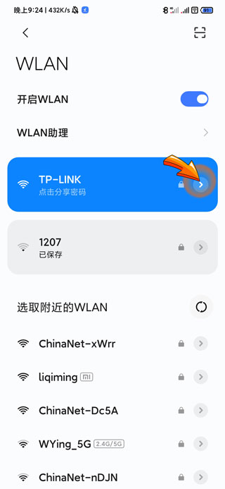 设置无线网密码首先点击桌面上的“设置”图标,然后点击设置页面中的“WLAN”选项,点击无线网名称右侧的“箭头”图标,将页面滑到底部,点击页面下方的“修改密码”选项即可设置密码。