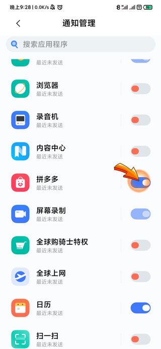 4、在通知管理页面中找到拼多多图标,将其右侧的开关按钮关闭即可。