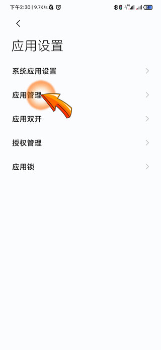 3、然后点击应用设置页面中的“应用管理”选项。