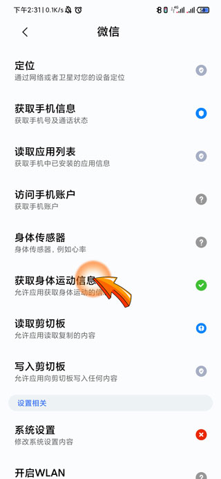 6、最后点击“获取身体运动信息”选项,允许微信获取运动信息即可。
