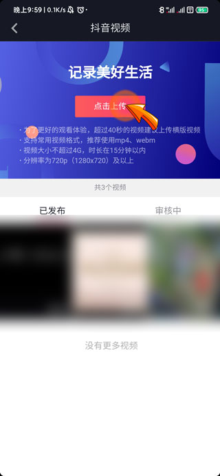 5、最后点击页面上方的“点击上传”选项即可发布长视频。