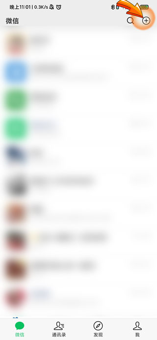 1、两个人建立微信群聊首先需要打开微信APP,点击首页右上角的“加号”图标。