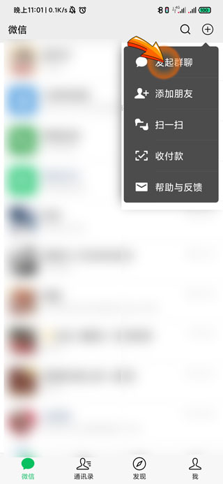 2、此时页面会弹出一个窗口,点击窗口中的“发起群聊”选项。