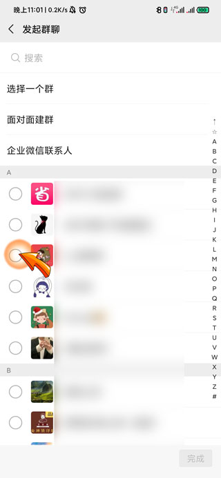 3、在联系人中找到对方,并点击其头像左侧的“按钮”图标。