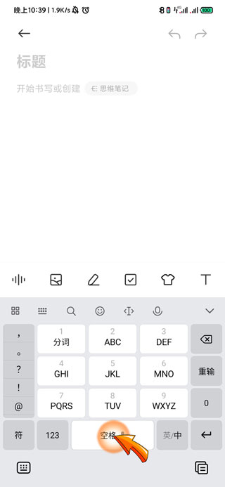 1、手机的空格键需要打开输入法页面查找,点击可以编写的界面,使输入法弹出。