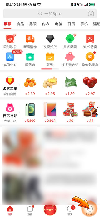 1、拼多多开启拼小圈首先打开拼多多APP,点击首页右下角的“个人中心”图标。