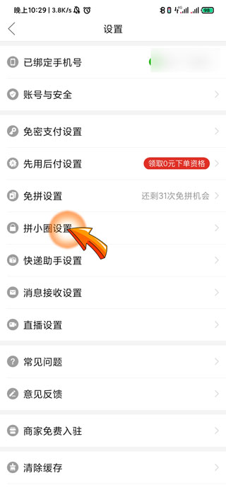 3、进入设置页面后,点击“拼小圈设置”选项。
