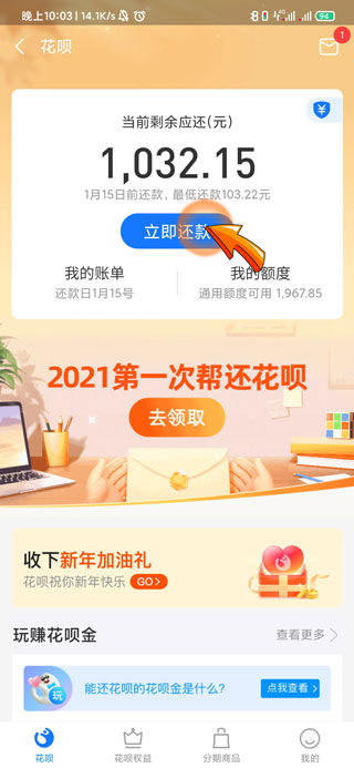 3、进入花呗页面后点击“立即还款”选项。