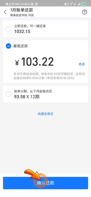 5、最后点击页面底部的“确认还款”选项即可进行最低还款。