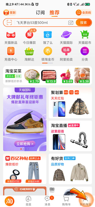 1、淘宝查看评价首先需要打开淘宝APP,点击首页右下角的“我的淘宝”图标。