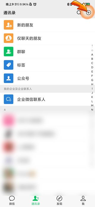 1、微信搜索微信号首先需要打开微信APP,点击页面右上角的“加号”图标。
