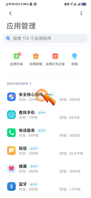3、然后点击应用管理中正在运行的“程序”图标。