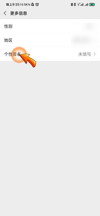 4、再点击更多信息页面中的“个性签名”选项。