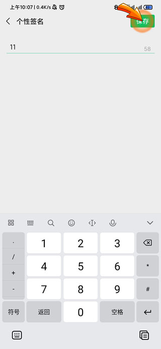5、填写完个性签名后,点击页面右上角的“保存”选项即可。