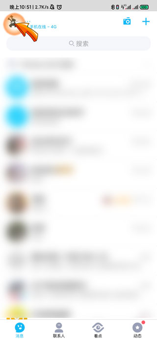 1、qq换绑手机号首先需要打开QQAPP,点击首页左上角的“头像”图标。