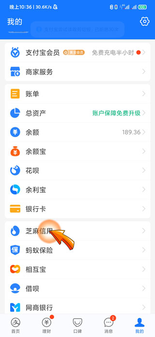 3、进入芝麻信用页面后,页面上方的数字即为芝麻信用分。