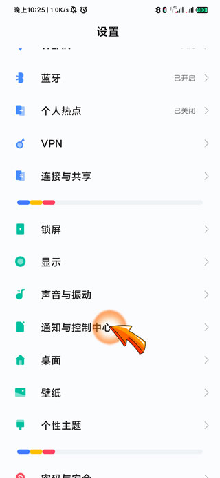 2、进入设置页面后,点击“通知与控制中心”选项。