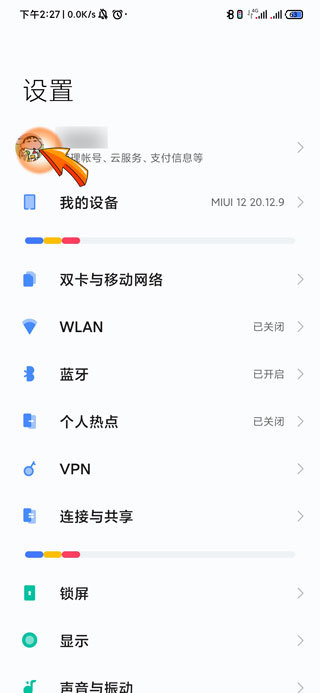 2、进入设置页面后,点击顶部的账号“头像”图标。