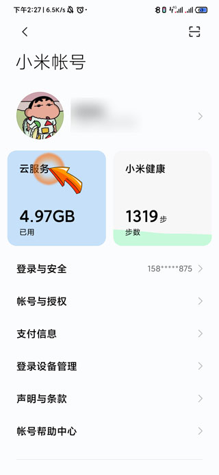 3、最后点击小米账号中的“云服务”图标,即可查看手机备份。