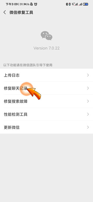 5、最后点击“修复聊天记录”选项即可恢复聊天记录。
