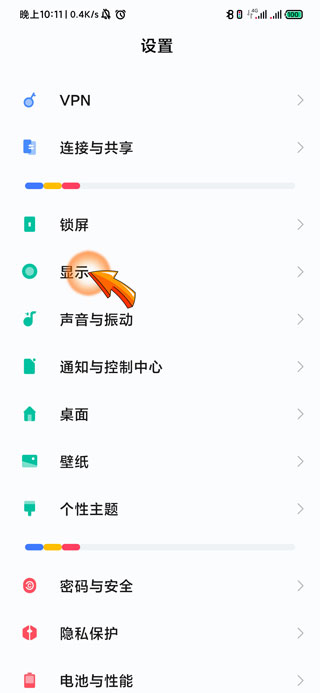 2、进入设置页面后,找到并点击“显示”选项。