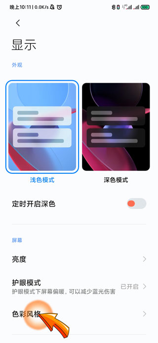 3、然后点击显示页面底部的“色彩风格”选项。