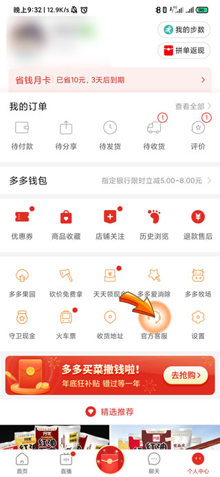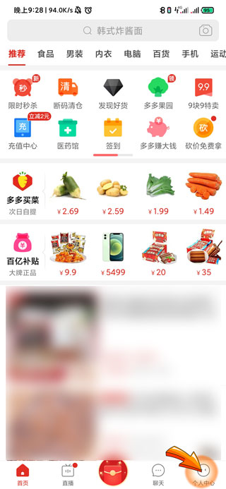 1、拼多多永久注销账号首先需要打开拼多多APP,点击首页右下方的“个人中心”图标。