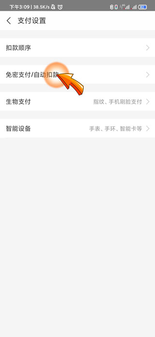 4、进入页面后点击“免密支付/自动扣款”选项。