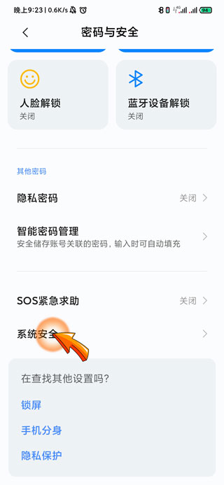 3、然后下滑页面到最底部,点击“系统安全”选项。