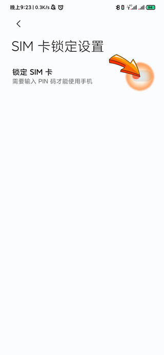 5、最后点击打开“锁定sim卡”右侧的开关按钮,即可设置sim卡密码。