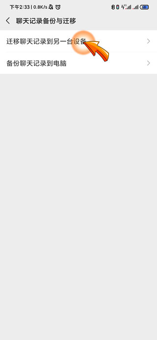 5、最后选择备份和迁移方式,例如点击“迁移聊天记录到另一台设备”选项进行备份。
