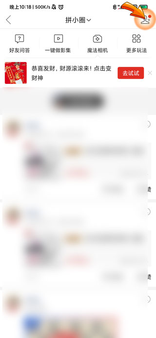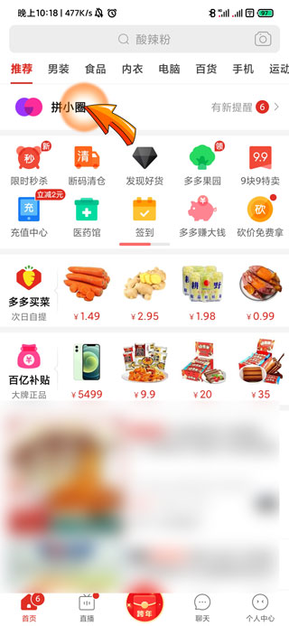 1、拼多多查看好友列表首先需要打开拼多多APP,点击首页上方的“拼小圈”选项。