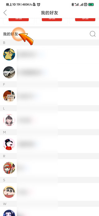 3、将页面上滑即可查看到我的好友,同时可以点击我的好友右侧的“放大镜”图标,搜索我的好友。