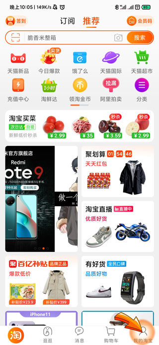 1、淘宝进行评价首先需要打开淘宝APP,点击首页右下角的“我的淘宝”选项。