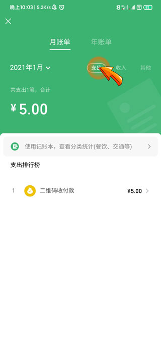 6、最后点击页面中的“支出”选项,即可查看微信账单中的净支出。
