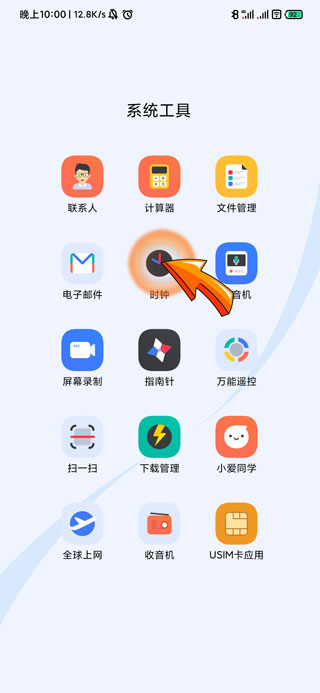 1、闹钟不响铃首先需要点击桌面上的“时钟”图标。