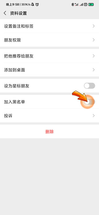 3、最后将“加入黑名单”右侧的开关按钮关闭即可。