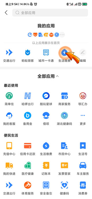 2、进入页面后找到并点击“生活缴费”选项图标。