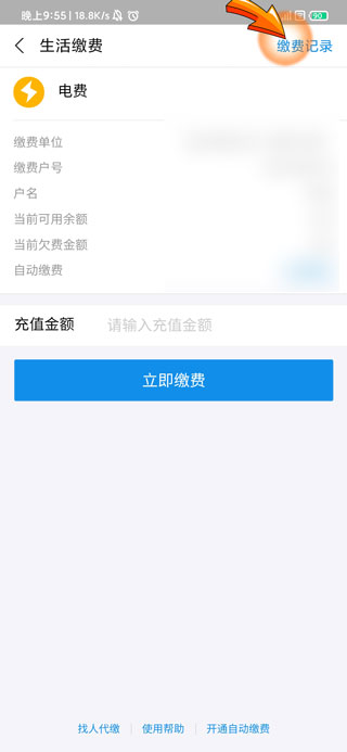 4、最后点击页面右上角的“缴费记录”选项即可查看电费账单明细。