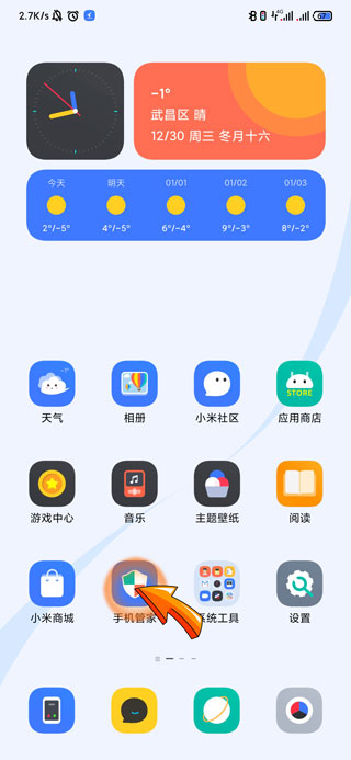 1、手机已用空间清除需要点击打开手机桌面上的“手机管家”选项。